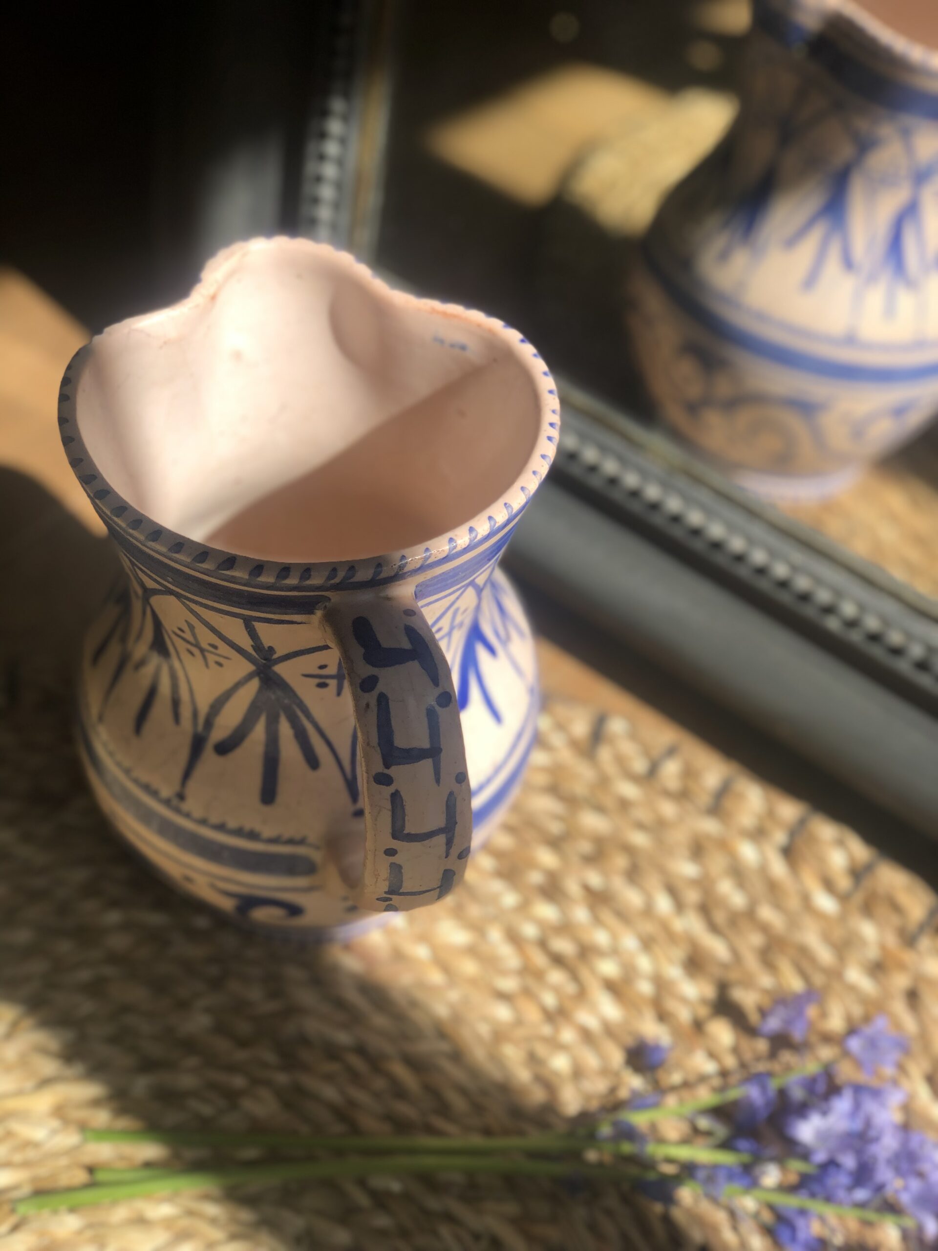 Cruche en céramique peinte à la main – style méditerranéen