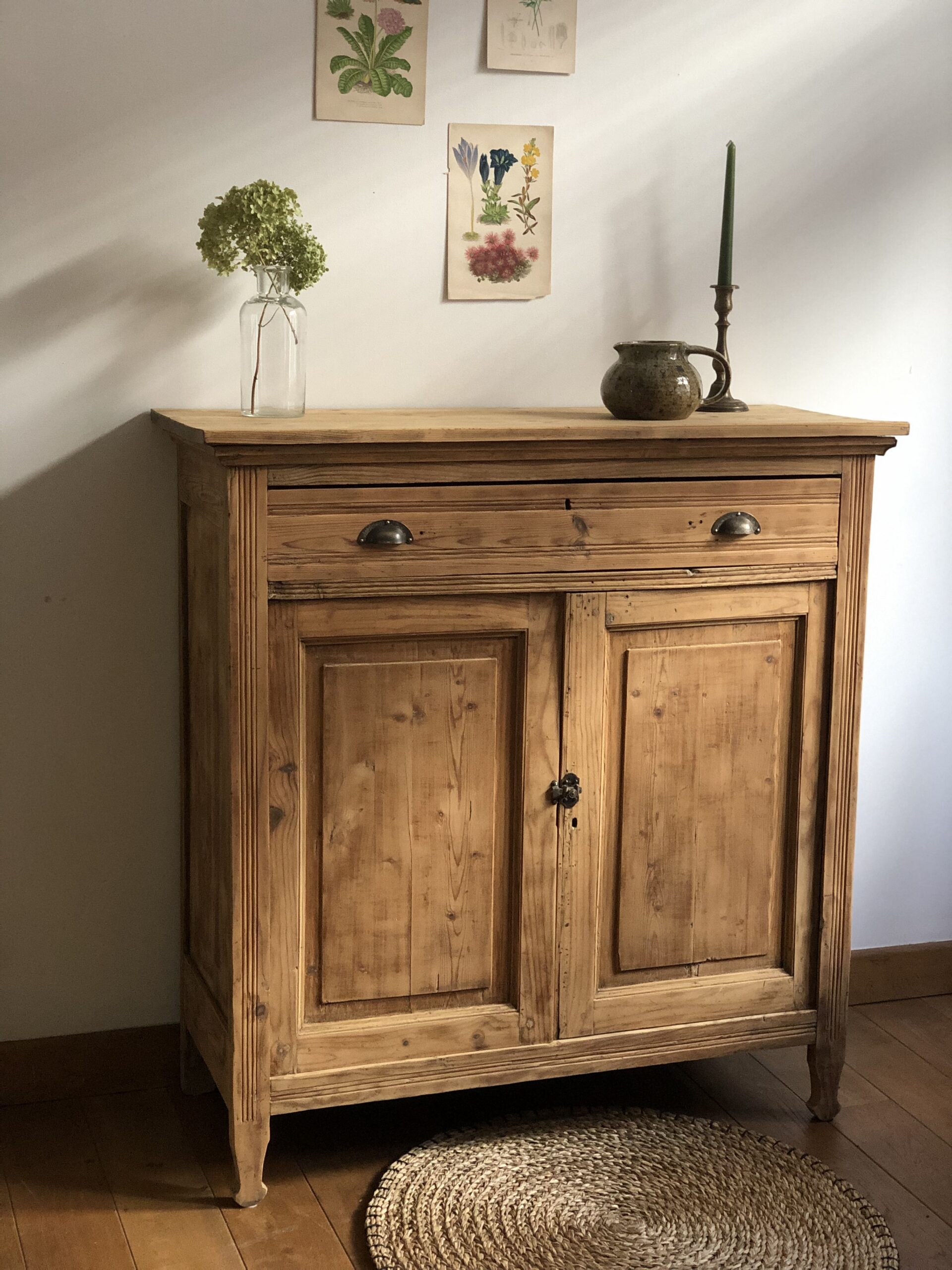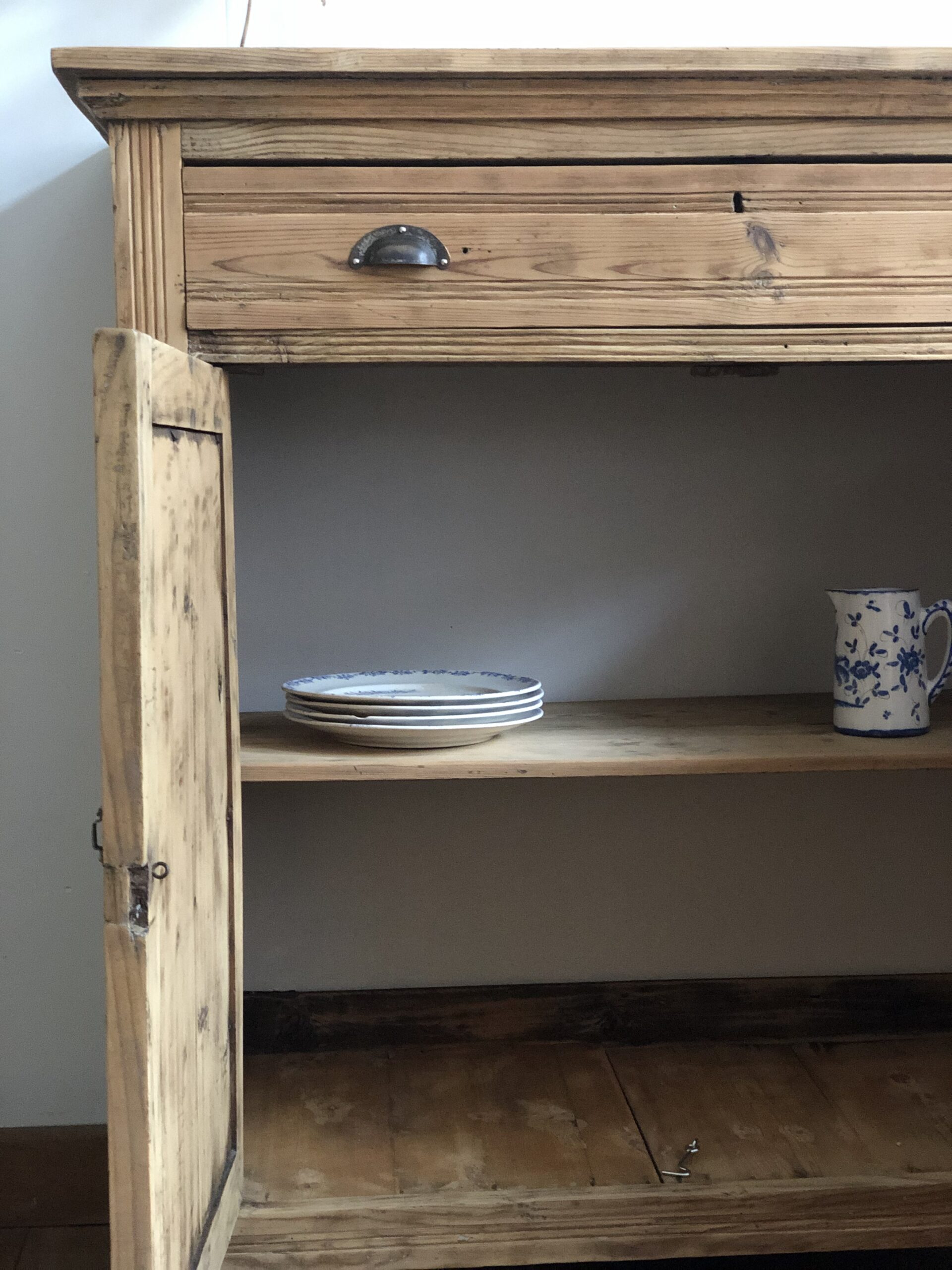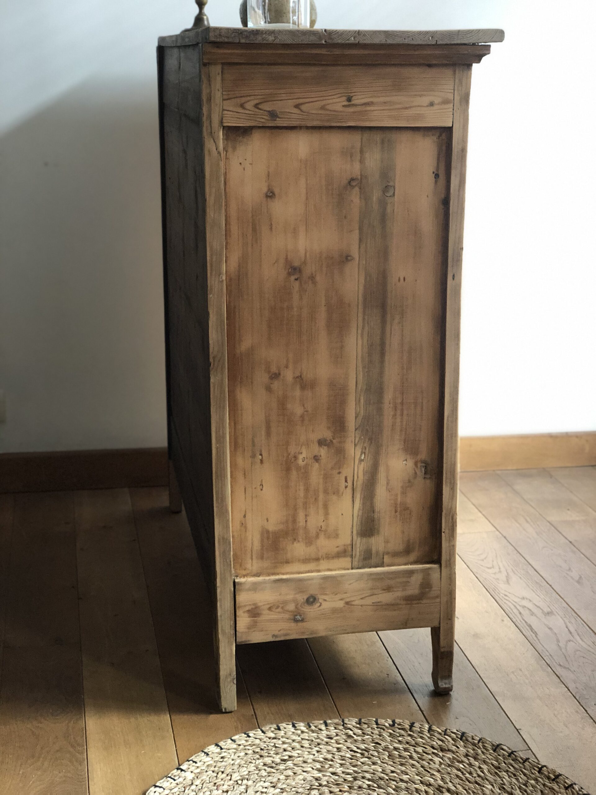 Ancien buffet parisien en sapin, sobre et élégant.