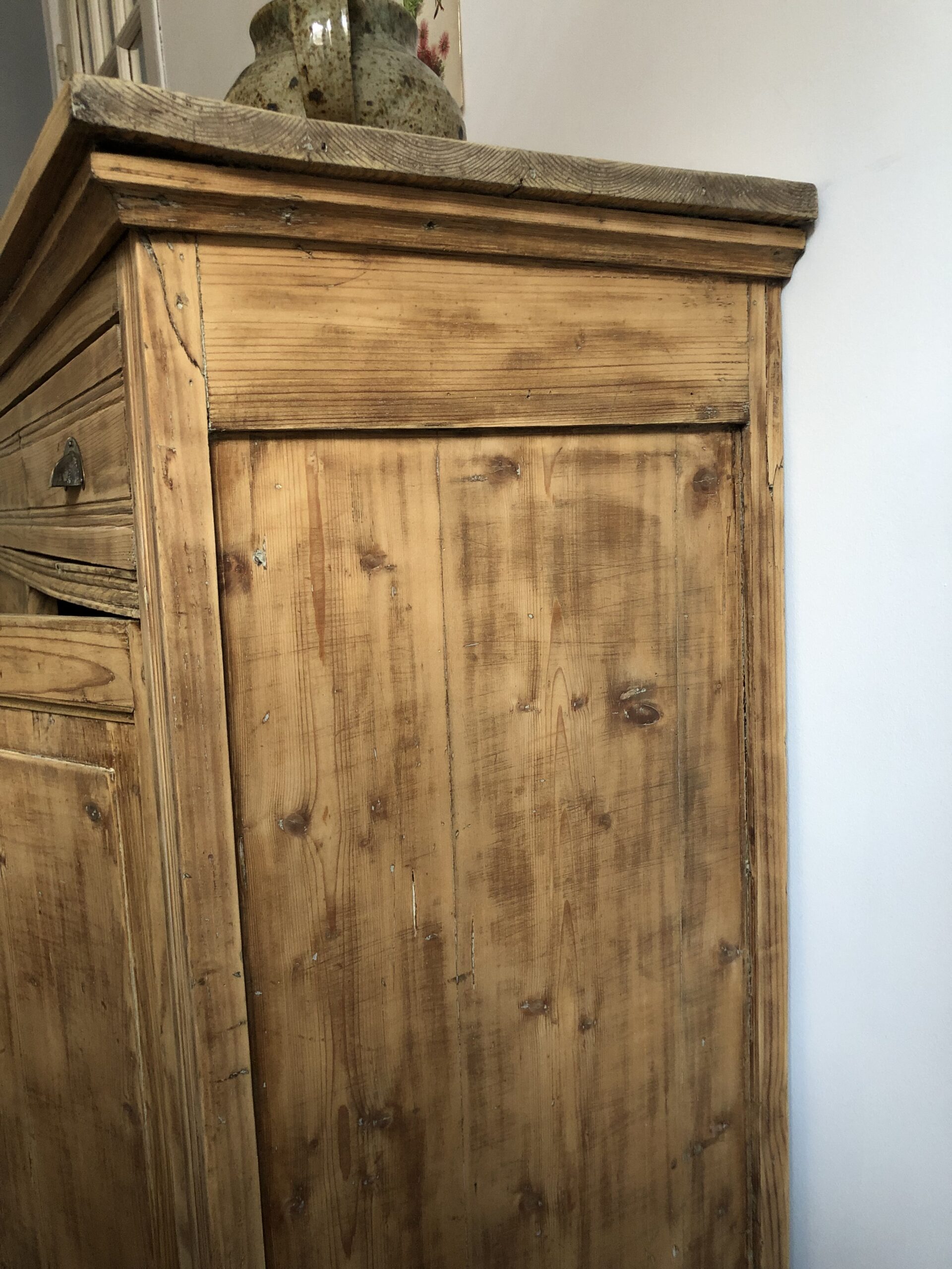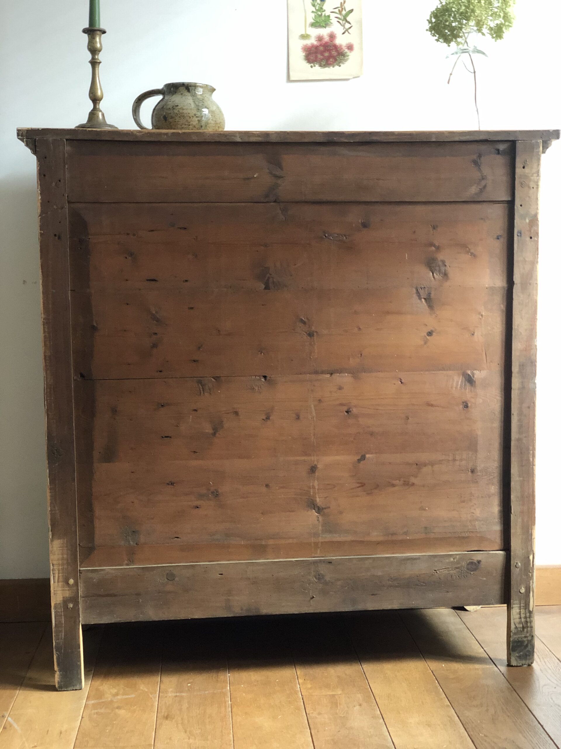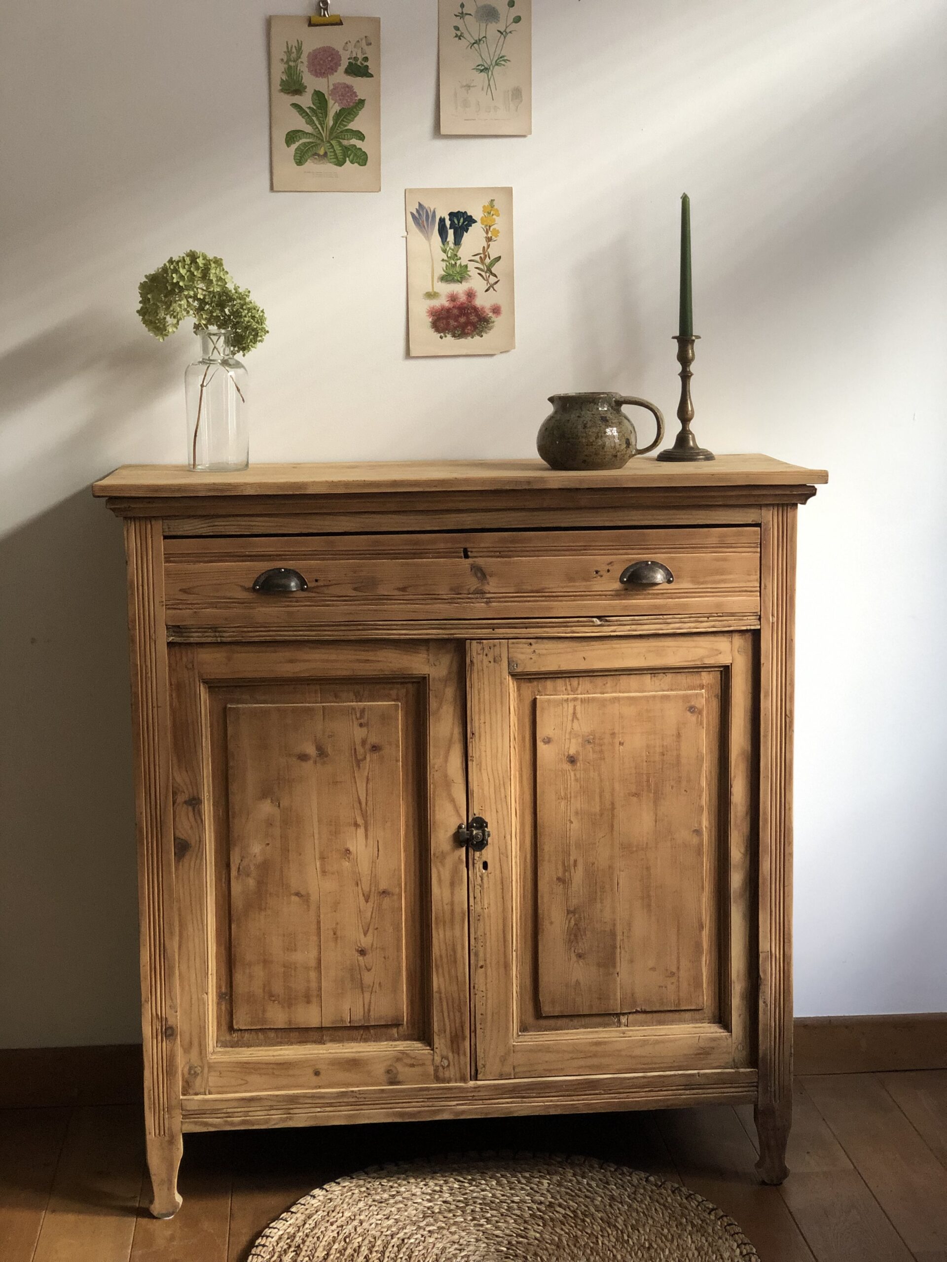 Ancien buffet parisien en sapin, sobre et élégant.